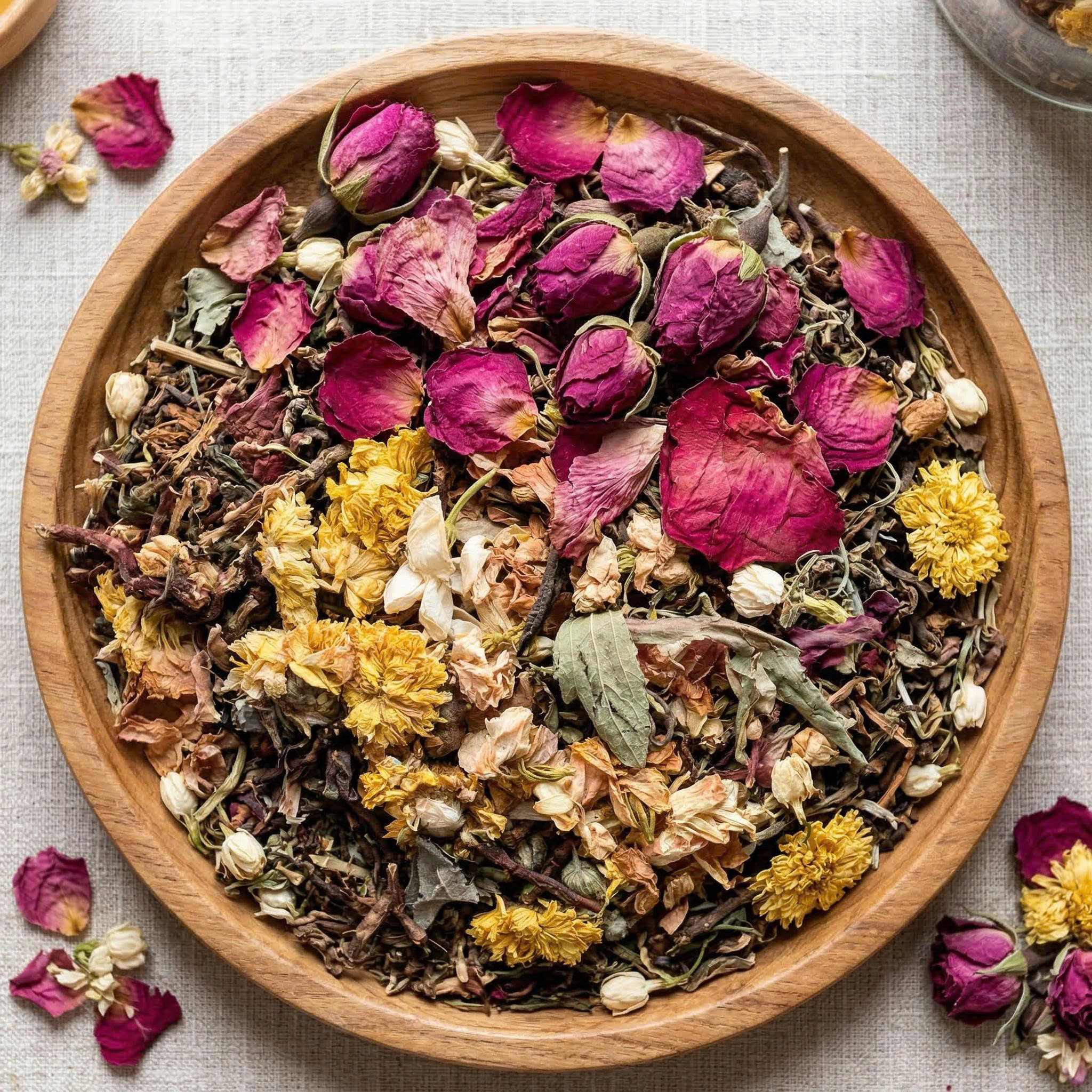 Thành phần: Sơn mật hồng sâm, hoa nhài, hoa hồng, cỏ ngọt, hoa cúc