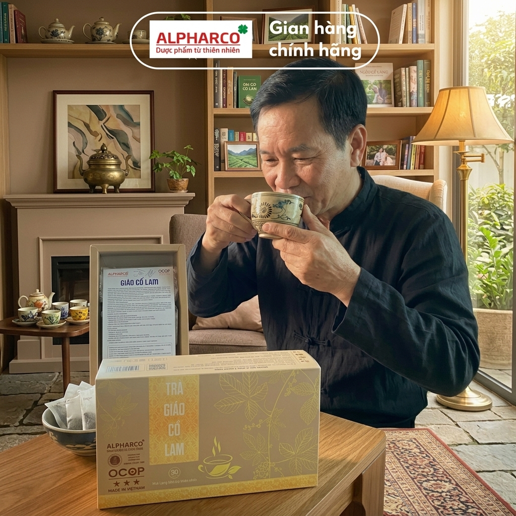 Thành phần: Giảo cổ lam 70%, đông trùng hạ thảo, đinh lăng, lá sen, linh chi, la hán quả