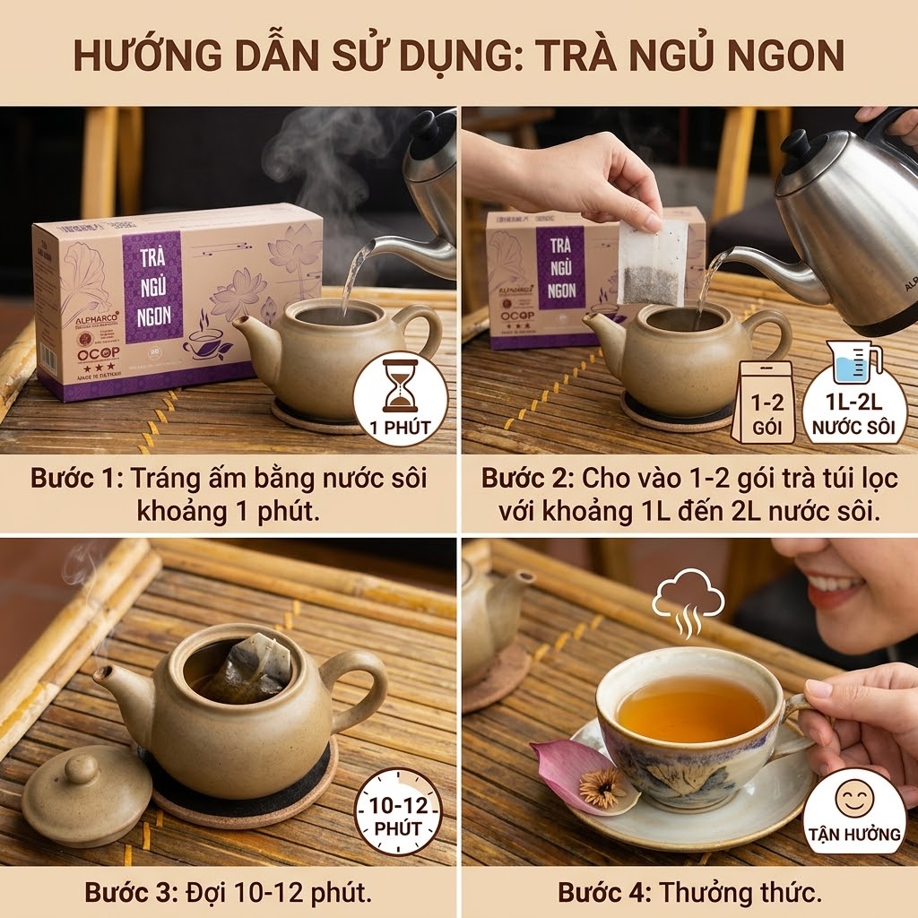 - Nên uống trà ấm, khoảng 30-60 phút trước khi đi ngủ.