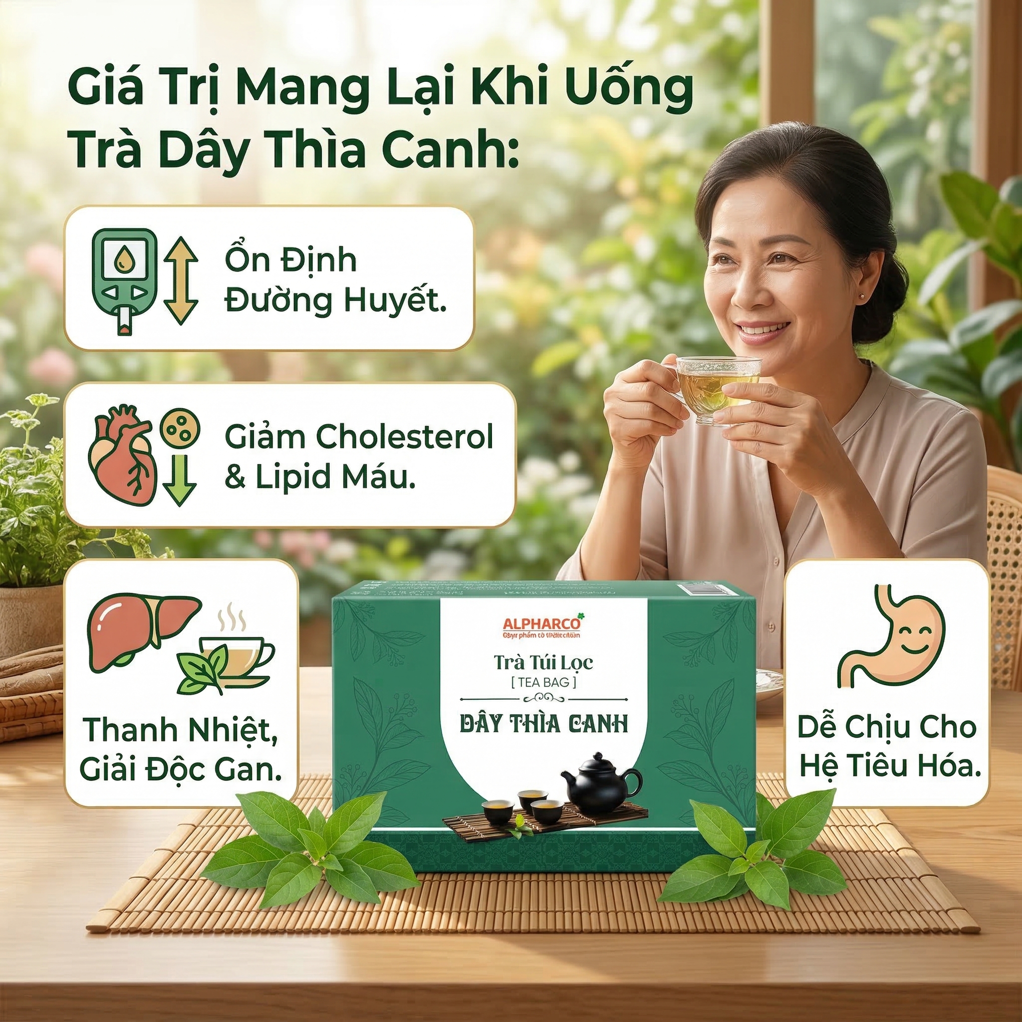 Thành phần: Dây thìa canh, cỏ ngọt.